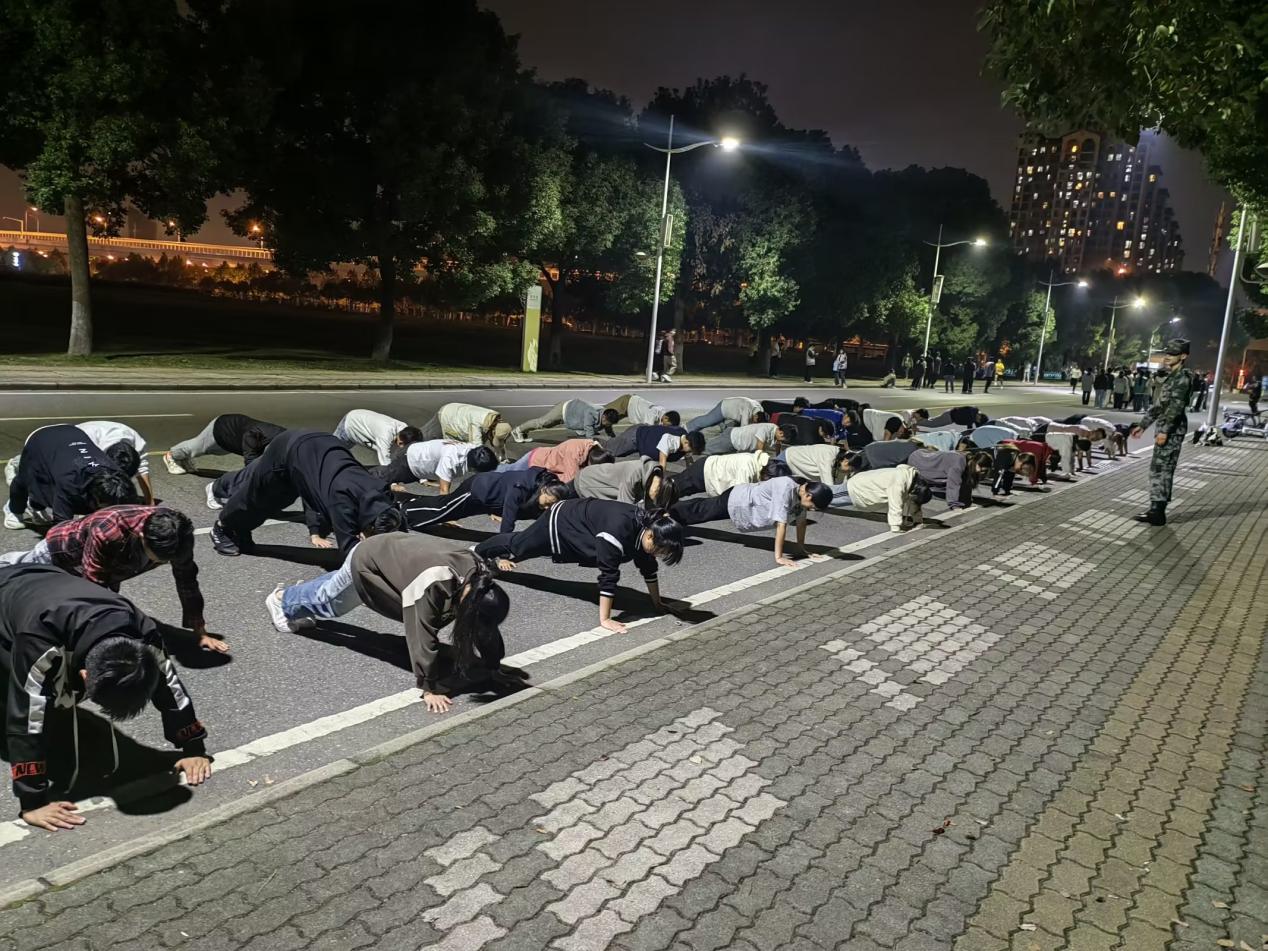 本次团训活动自10月9日开始,五天活动中,新一届团委、员工会成员每晚九点齐聚在腾龙大道东路,开展高抬腿、开合跳、俯卧撑、仰卧起坐等体能训练。在休憩之余,还会进行有趣的“贴膏药”、“真心话大冒险”、“谁是卧底”等小游戏。团训最后一天,采取了环校跑的活动,旨在让各位新晋成员切实领略校园风采,增强集体凝聚力。